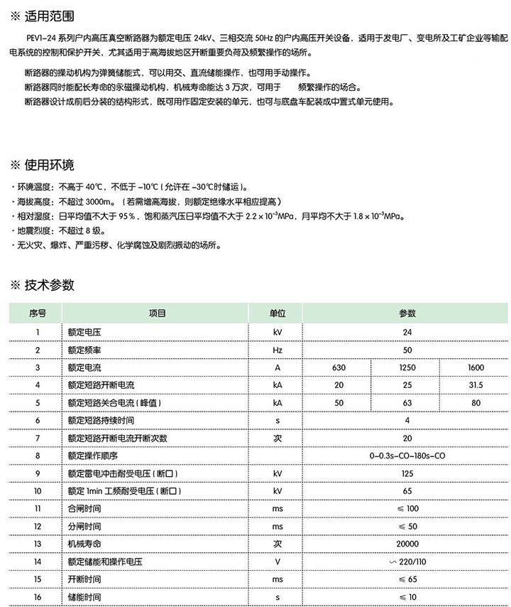PEV1-24戶內(nèi)高壓真空斷路器