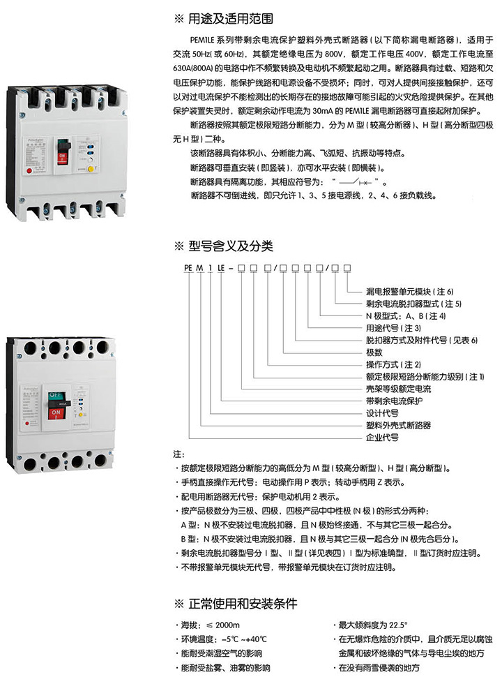 PEM1LE 帶剩余電流保護塑料外殼式斷路器