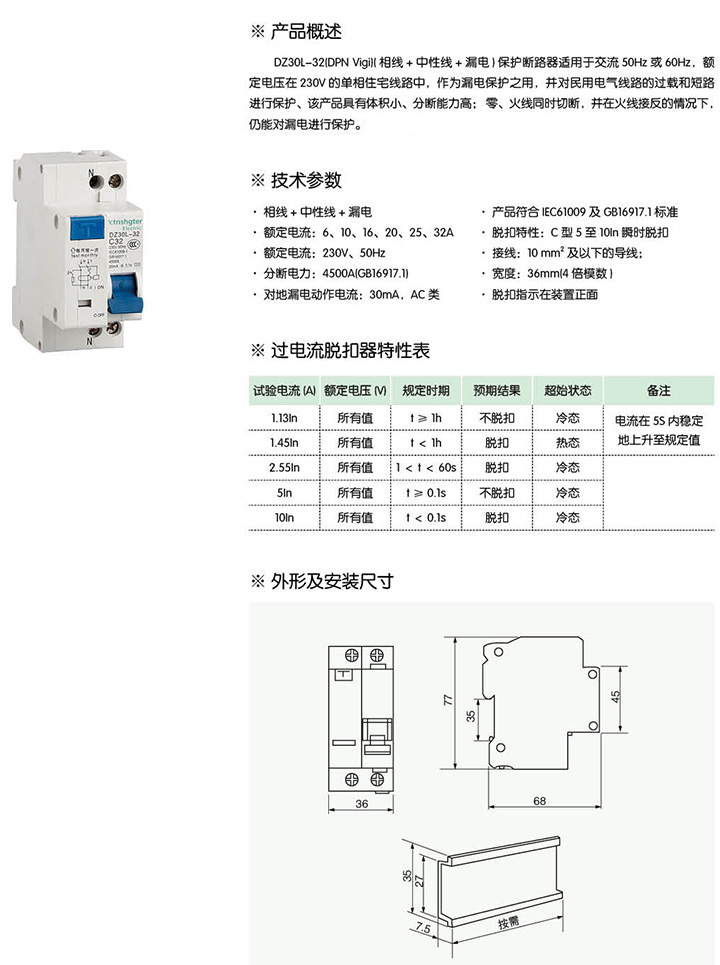 DZ30L相線+中性線+漏電保護(hù)斷路器